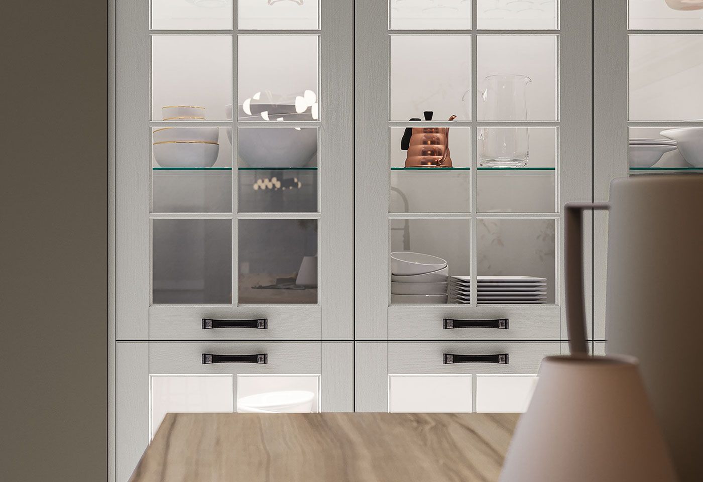 amplificata dall’abbinamento tra toni neutri ed essenze lignee. Asolo è eleganza leggera con modanature e decorazioni sottili.