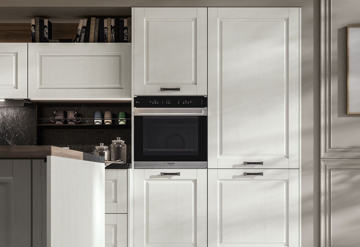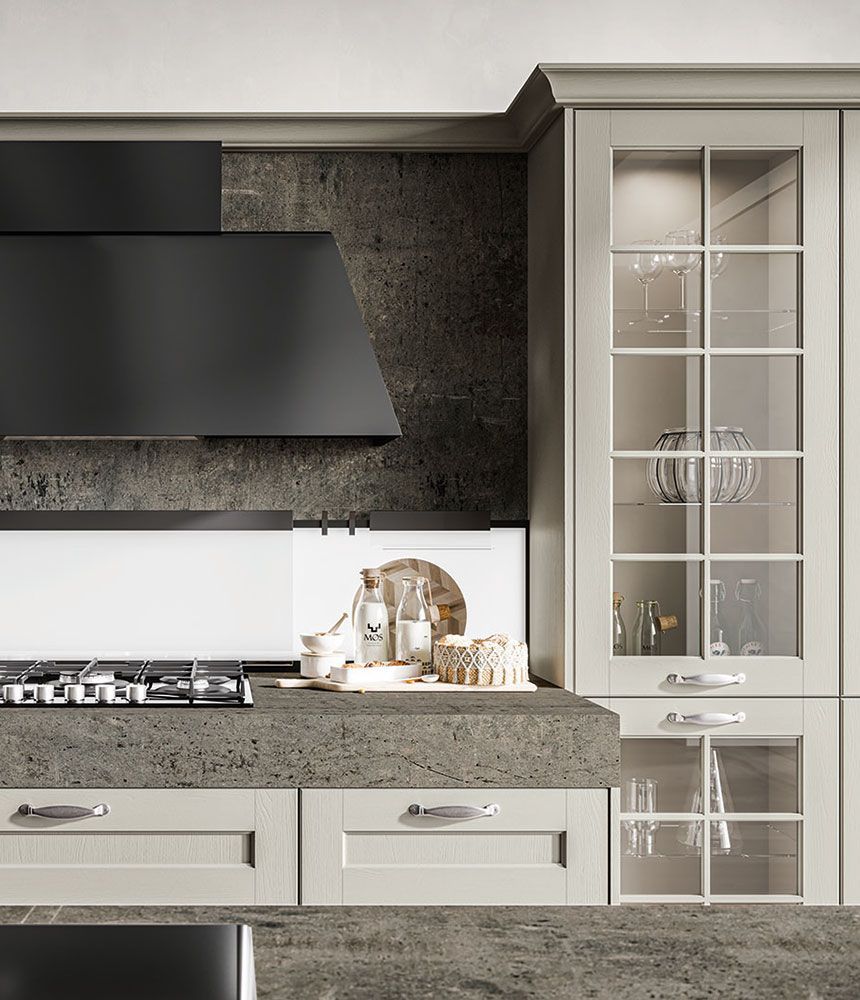 olo di Arredo3 è una cucina elegante dallo stile classico e leggero allo stesso tempo perché è caratterizzata da modanature e sottili elementi decorativi e da un’anta diamantata con telaio in massello di frassino. Puoi così creare un’atmosfera raffinata e rassicurante,