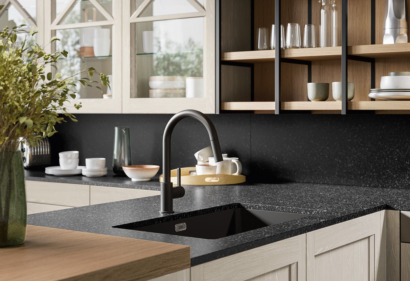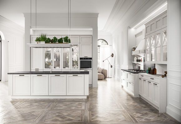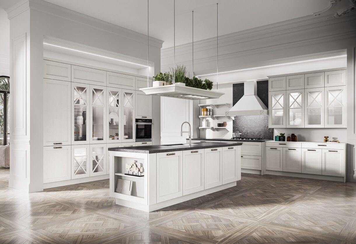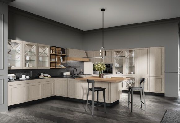Frida classic è una cucina molto versatile perché mette a disposizione innumerevoli finiture fra laccati opachi, laccati poro aperto,