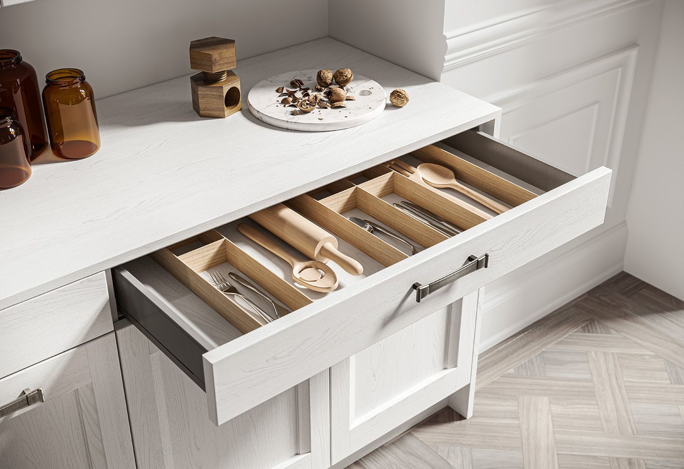 decapè o legni e complementi dedicati. Fra questi, puoi scegliere supporti in metallo per i ripiani, le doghe e un originale supporto penisola per personalizzare la cucina. L’anta a telaio è in massello di frassino con particolare presa maniglia integrata.