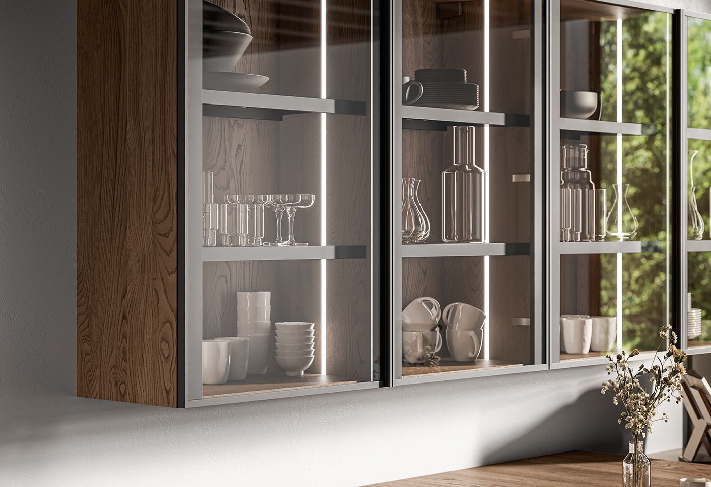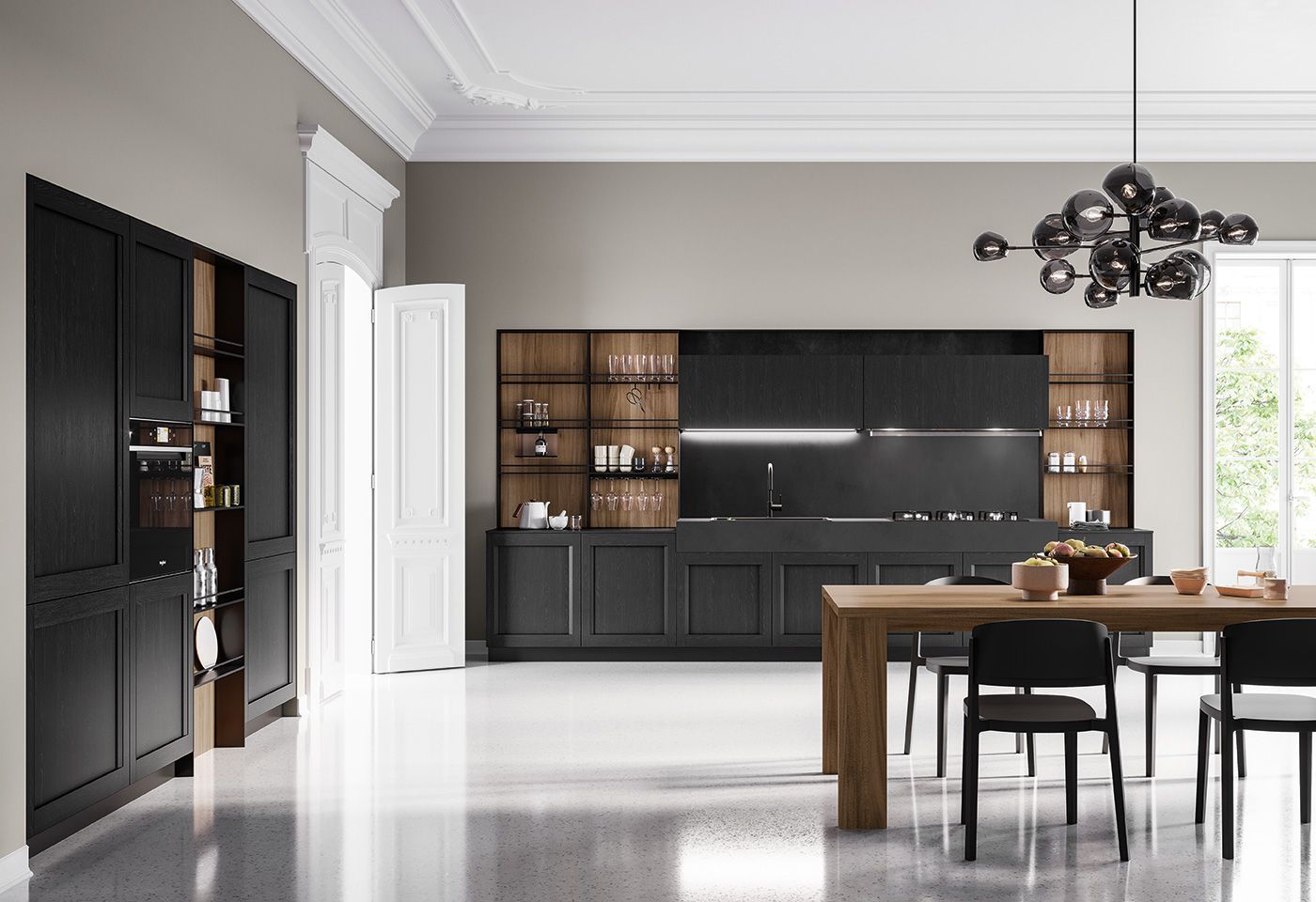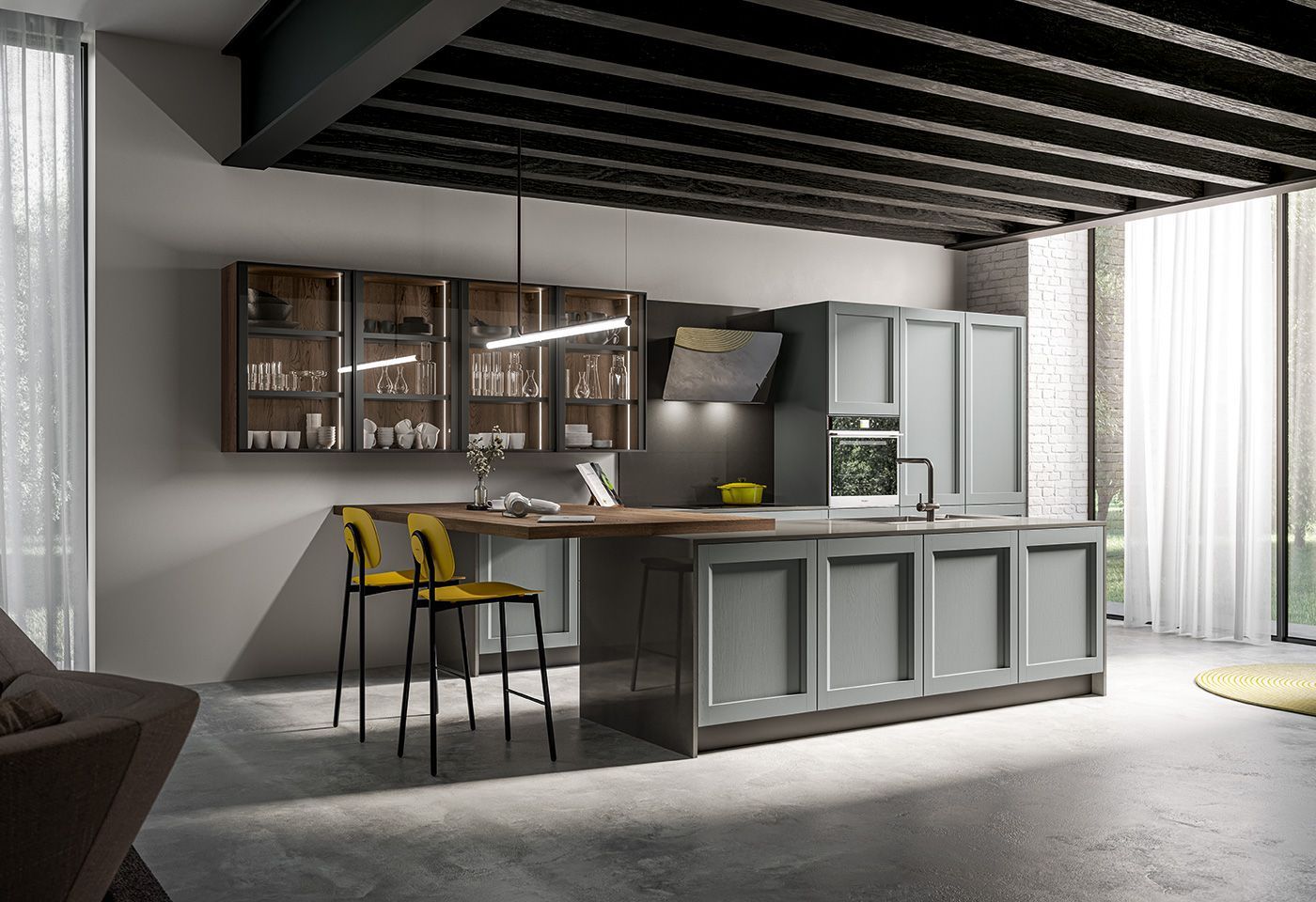 le doghe e un originale supporto penisola. È caratterizzata da un’anta a telaio massello con particolare presa maniglia integrata che la rende facile da abbinare a ogni scelta di finitura, si tratti di laccati poro aperto, decapè o legni. Puoi comporla a piacere seguendo il tuo gusto e renderla una cucina moderna perfettamente in linea con le tue esigenze. Per chi sceglie la libertà, complice una presa maniglia su telaio.